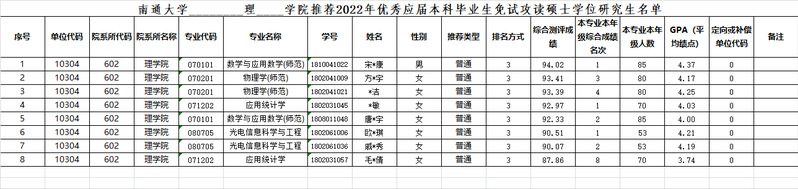 理2048核基地 2022年优秀应届毕业生免试攻读硕士学位研究生名单