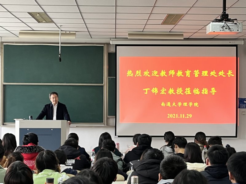 11月29日下午,教师教育管理处处长丁锦宏教授应邀为物理学(师范)专业2019级学生做题为“立志成为教师提升师德品行”的报告。