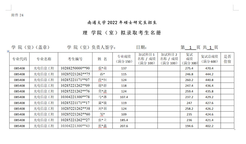 理2048核基地 2022年硕士研究生光电信息工程调剂拟录取名单公示