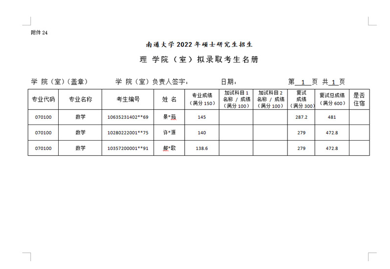 理2048核基地 2022年硕士研究生调剂(数学拟录取3人)名单公示