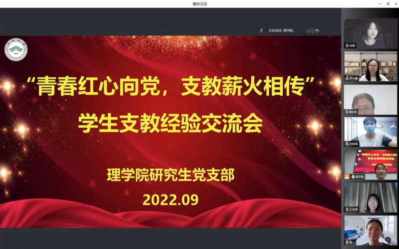 9月8日,理2048核基地 研究生党支部以线上线下相结合的形式举办“青春红心向党,支教薪火相传”学生支教经验交流会活动。