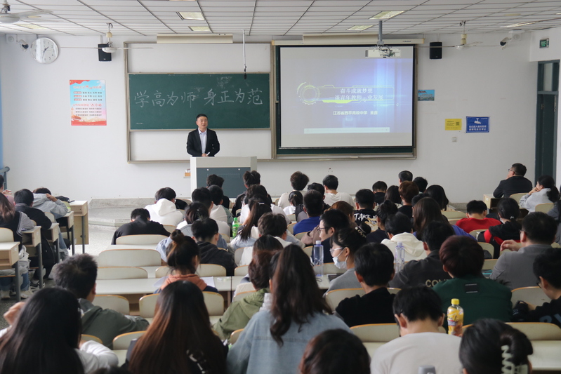 金老师结合自身的十余年的教学经验,向同学们讲述了作为一位青年教师我们应该不断提高自身的专业素质,包括解题能力、对基础知识的理解能力、PPT制作能力、模拟上课能力以及粉笔字能力;同时他鼓励同学们积极参加教师基本功大赛,他认为这项赛事非常锻炼教师的全方面能力,可以让一个年轻教师从中得到蜕变;金老师还鼓励同学们利用大学生活认真学习各种画图软件和课件制作,他认为这是信息化时代教师必须要掌握的基本技能;此外金老师还要求我们提高解题能力,他认为拥有好的解题能力的老师在教学过程中自信心也就会提高,才能在教学过程中游刃有余。