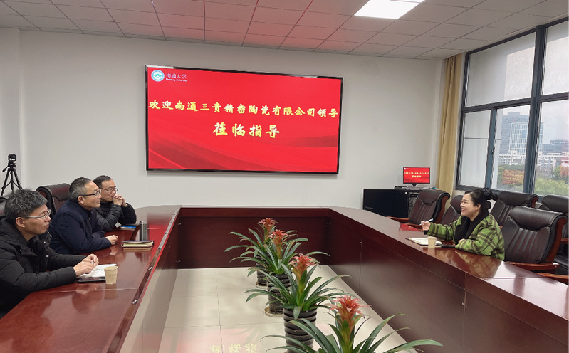 仲崇贵副院长对张喜经理的到来表示热烈欢迎,介绍了南通大学在产学研合作及产品检测服务方面的基本情况,并展望了与南通三责精密陶瓷有限公司的合作前景。