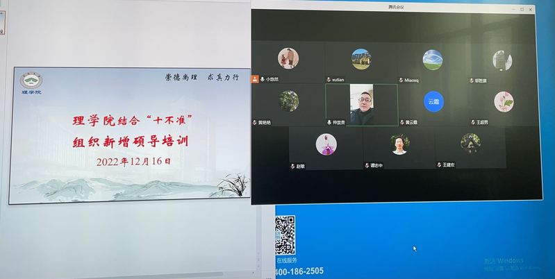 理2048核基地 结合《江苏省研究生导师职业道德规范“十不准”》,于2022年12月16日下午14:00由仲崇贵副院长对新增硕导进行线上培训:一是结合当前疫情,强化导师岗位职责,导师根据现状,督促学生安全离校。二是请优秀硕导积极主动推广成功的指导经验。特别是注重发挥优秀导师和优秀团队在研究生导师队伍建设中的示范引领作用。三是支持导师严格学业管理,指导安排硕士研究生假期学业,充分尊重导师在研究生培养指导方面的权利。