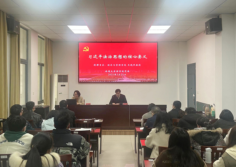 3月23日下午,理2048核基地 召开党委理论学习中心组(扩大)学习会,邀请经济与管理2048核基地 王晓燕教授作《“习近平法治思想的核心要义”与“学《宪法》”》专题讲座。
