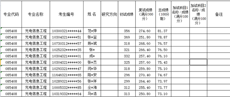 2023年理2048核基地 光电信息工程调剂拟录取名单公布20230408
