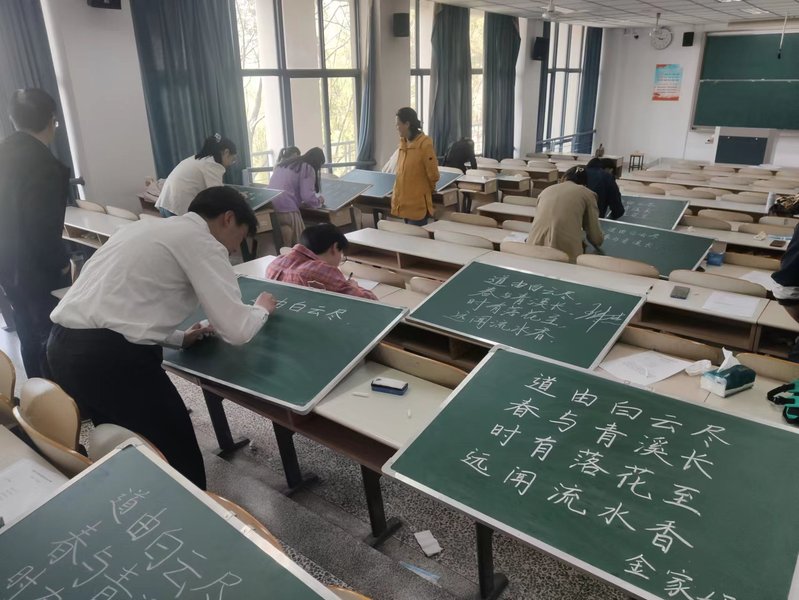 经过前期筛选,有20名选手入围决赛。决赛由上午教资考试、模拟授课、下午口语表达、粉笔字、钢笔字五个项目构成。经过激烈的角逐,奚悦、秦明同学获得一等奖,杨一、金家妍、赵烨、李雪梅同学获得二等奖,朱一平、张佳榆、王伟杰、刁明晖、纪佳婷、王彤月、周碧瑜、顾欣同学获得三等奖。