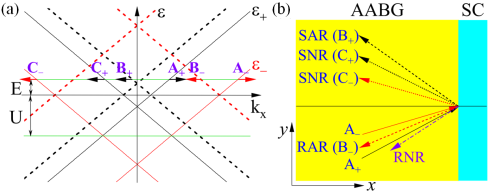 该研究发现Andreev反射性质强烈地依赖于能锥自由度。在没有层间偏压时,由于锥间波函数的正交关系,只能发生锥内的Andreev反射,而锥间反射被禁止。通过调节势能可以使锥内Andreev反射在一个能锥处为镜面反射(SAR),而在另一能锥处为原路反射(RAR)。层间偏压的存在会导致锥间散射,两能锥之间会发生双重Andreev反射。此时锥间的镜像反射可以发生在广泛的势能区域,这为实验观测提供了方便。通过调节势能可以使原路反射和镜像反射之间开关切换。因此,基于原路反射和镜像反射,可以实现不同能锥载流子的空间分离。而且,在原路与镜像反射转换的临界值附近,可以实验测量到完全锥极化的Andreev电导。研究结果为实验检测镜像Andreev反射提供了一种电学方法,并为设计锥电子器件提供了理论依据。