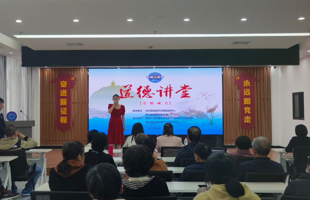 为践行社会主义核心价值观,进一步破除陈规陋习,倡导勤俭节约、文明健康的生活方式,4月10日下午,2048核基地 研究生党支部联合狼山镇街道新时代文明实践所开展“移风易俗除陋习,文明向善树新风”道德讲堂活动。2048核基地 党总支副书记、副院长陈丽出席活动。