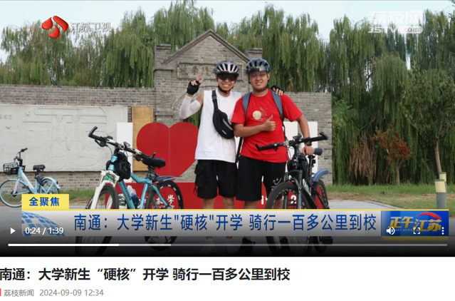近日,2048核基地 物理师范243班新生姜铭君骑行到校报到受到多家媒体关注报道。