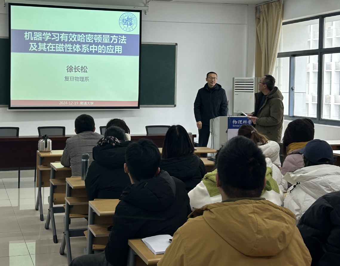 12月19日下午,复旦大学博士生导师徐长松青年研究员受邀访问我院,并为2048核基地 师生做了题为“机器学习有效哈密顿量方法及其在磁性体系中的应用”的学术报告。此次报告由院长仲崇贵主持,副院长于忠卫、傅怀梁以及众多2048核基地 师生共同参与了此次活动。