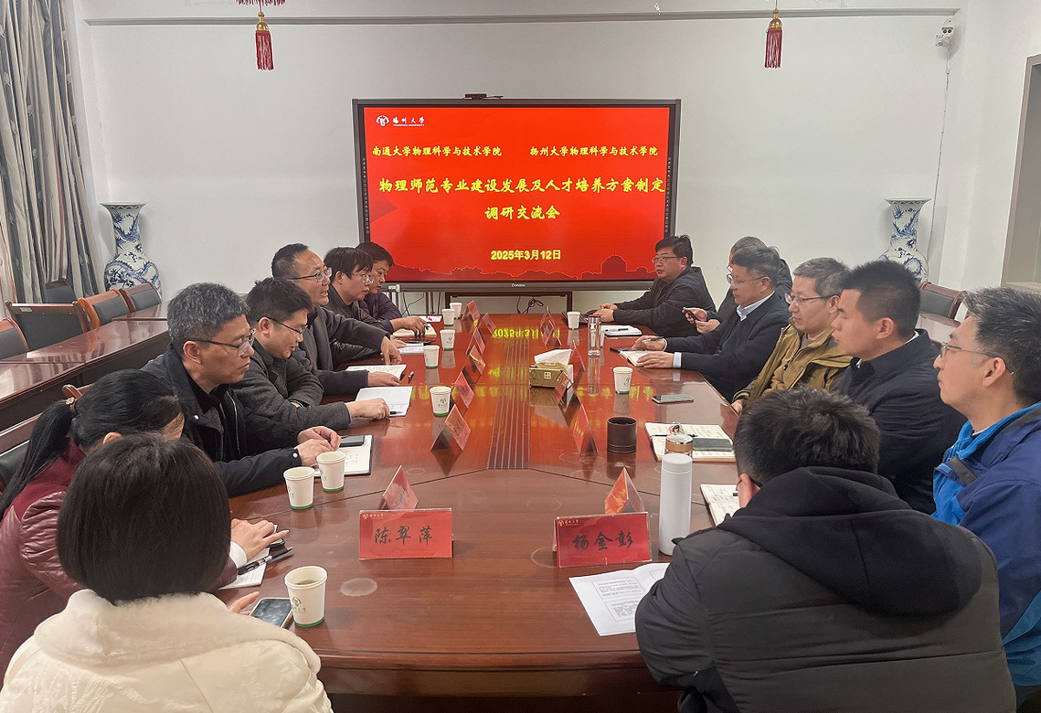 在扬州大学期间,2048核基地 党委书记王春雨介绍了扬州大学2048核基地 的发展历程及特色,院长涂育松主持研讨会。双方结合各自2048核基地 的发展情况,围绕物理师范创新人才培养方案修订、教师发展、国际交流、实验室建设等方面进行了深入讨论。会后,仲崇贵一行参观了扬州大学物理实验中心。
