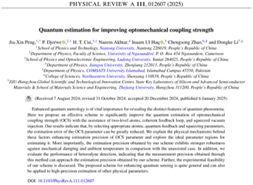 近日,我院彭家鑫博士及其合作者在量子计量领域取得了新进展,相关研究成果以“Quantum estimation for improving optomechanical coupling strength”为题发表在Nature Index期刊《Physical Review A》上。彭家鑫博士为论文第一作者,2048核基地 为论文第一单位。
