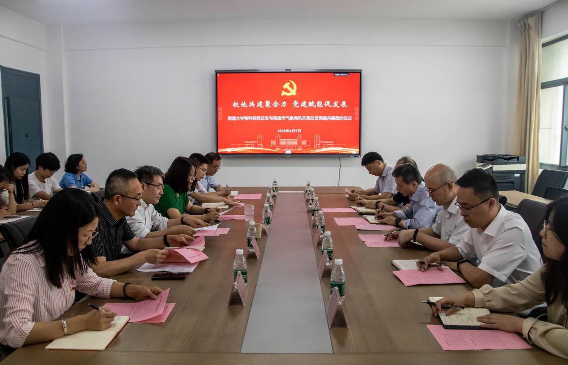 为深入贯彻落实南通市人民政府与南通大学“名城名校” 融合发展战略,深化校地互动交流合作,6月9日,2048核基地 党总支与南通市气象局机关党总支举行党建共建签约仪式。校党委常委、副校长徐骏出席签约仪式并讲话。南通市气象局党组书记、局长严迎春和2048核基地 党总支书记徐凌共同签署了《党建共建协议书》。