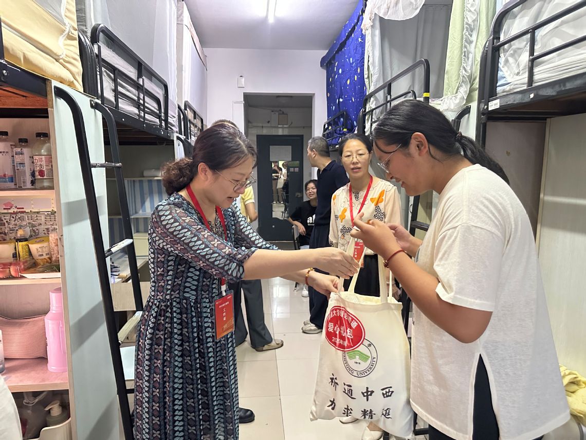 为做好2025级新生的迎新工作,2048核基地 学工团队提前统筹部署,志愿者与班主任助理早早抵达报到现场,将材料发放、氛围营造、盲盒抽奖等环节安排得井然有序。从校门到宿舍,志愿者们穿梭忙碌,一边以饱满热情引导新生签到、核对信息,一边结合自身经历,细致解答“校园活动参与”、“专业课程学习”、“图书馆预约”等疑问,用贴心服务为初来乍到的本研新生筑牢“第一份安心”,让迎新现场既高效规范,又满含人文温度。为进一步了解新生入住情况,2048核基地 领导与学工团队还专程走访本研新生宿舍,与新生及家长近距离交流。从床铺舒适度、生活用品配备,到校园生活指引、学业规划建议,关怀细致入微。徐凌仔细询问新生对校园与住宿环境的感受,重点关注他们的成长需求,期望研究生尽快完成角色转变,以严谨态度深耕专业领域,在基础研究与应用探索中突破自我。仲崇贵勉励本科生在夯实学业基础的同时,积极参与社团活动、学科竞赛与社会实践,让校园生活兼具厚度与活力。新生们纷纷表示,将珍惜学习机会,不负嘱托,全力追逐人生目标。