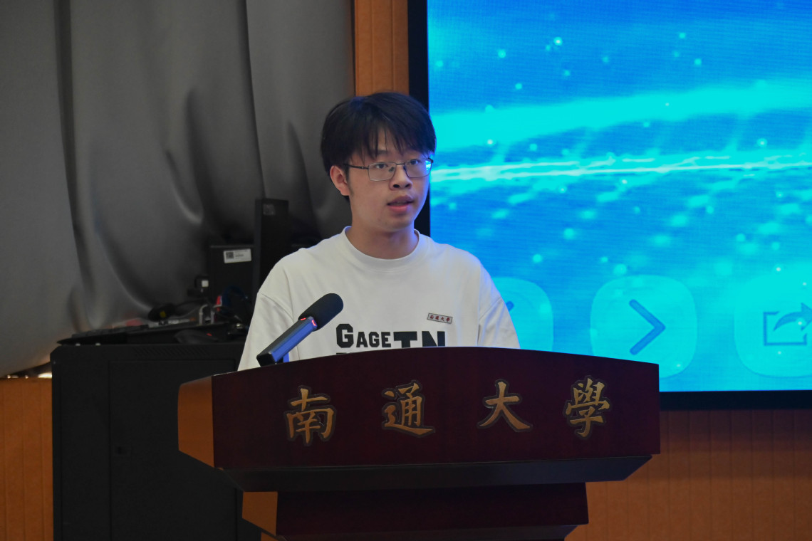 南通市三好学生、物理师范223班王宇星作为老生代表发言,他分享了入校以来对物理从朦胧向往到坚定热爱的历程,以及在专业学习中收获的成长与感悟,鼓励学弟学妹们要去勇于探索,积极尝试,始终保持好奇与求知欲,为新生们快速融入大学生活提供实用的建议。